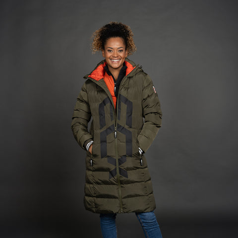 Het Long Women Jacket is een luxueuze en betrouwbare partner tijdens de koudere seizoenen. Met dit unieke design zie je er onder alle omstandigheden stijlvol uit. Het ultieme gevoel van vrijheid en draagcomfort. Het Long Women Jacket is voorzien van een waterafstotende coating zodat een onverwachte regenbui geen spelbreker wordt. Verborgen te openen ritsen in de zijpanelen geven de mogelijkheid tot extra ventilatie. Het verticale ECx logo is een echte eyecatcher en de getailleerde achterzijde geeft de jas vrouwelijke allure. Voorzien van een ruime capuchon met print en verrijkt met ECx details zoals een borduring op de kraag, silicone zipper pullers en een stijlvolle badge op de mouw. Het Long Women Jacket heeft 2 traditionele steekzakken, 1 binnenzak en groen met wit gestreepte gebreide boorden.