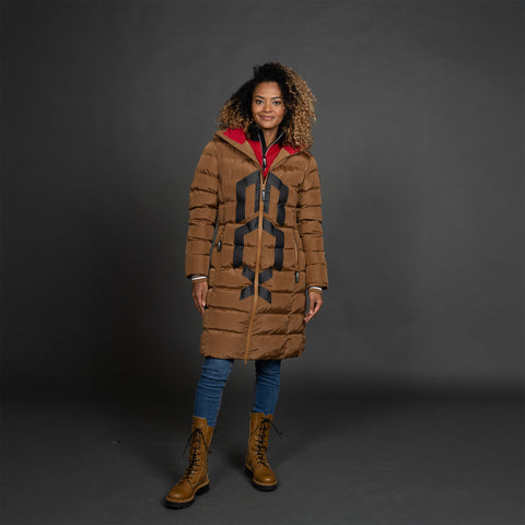 Het Long Women Jacket is een luxueuze en betrouwbare partner tijdens de koudere seizoenen. Met dit unieke design zie je er onder alle omstandigheden stijlvol uit. Het ultieme gevoel van vrijheid en draagcomfort. Het Long Women Jacket is voorzien van een waterafstotende coating zodat een onverwachte regenbui geen spelbreker wordt. Verborgen te openen ritsen in de zijpanelen geven de mogelijkheid tot extra ventilatie. Het verticale ECx logo is een echte eyecatcher en de getailleerde achterzijde geeft de jas vrouwelijke allure. Voorzien van een ruime capuchon met print en verrijkt met ECx details zoals een borduring op de kraag, silicone zipper pullers en een stijlvolle badge op de mouw. Het Long Women Jacket heeft 2 traditionele steekzakken, 1 binnenzak en bruin met wit gestreepte gebreide boorden.
